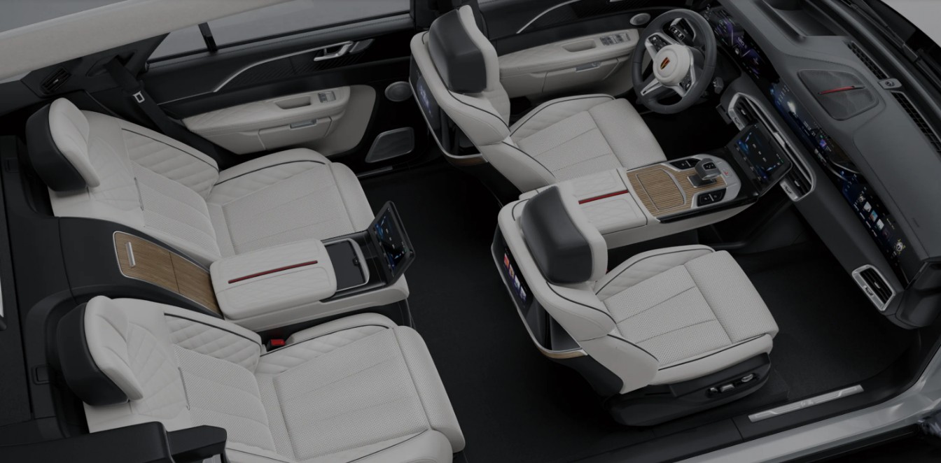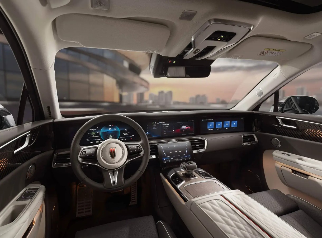 Внедорожник Hongqi E-HS9 сочетает роскошь, комфорт и технологичность. Салон обладает продуманной эргономикой. Он просторный и функциональный. Эстетичность и премиальность прослеживается в каждом конструктивном элементе.